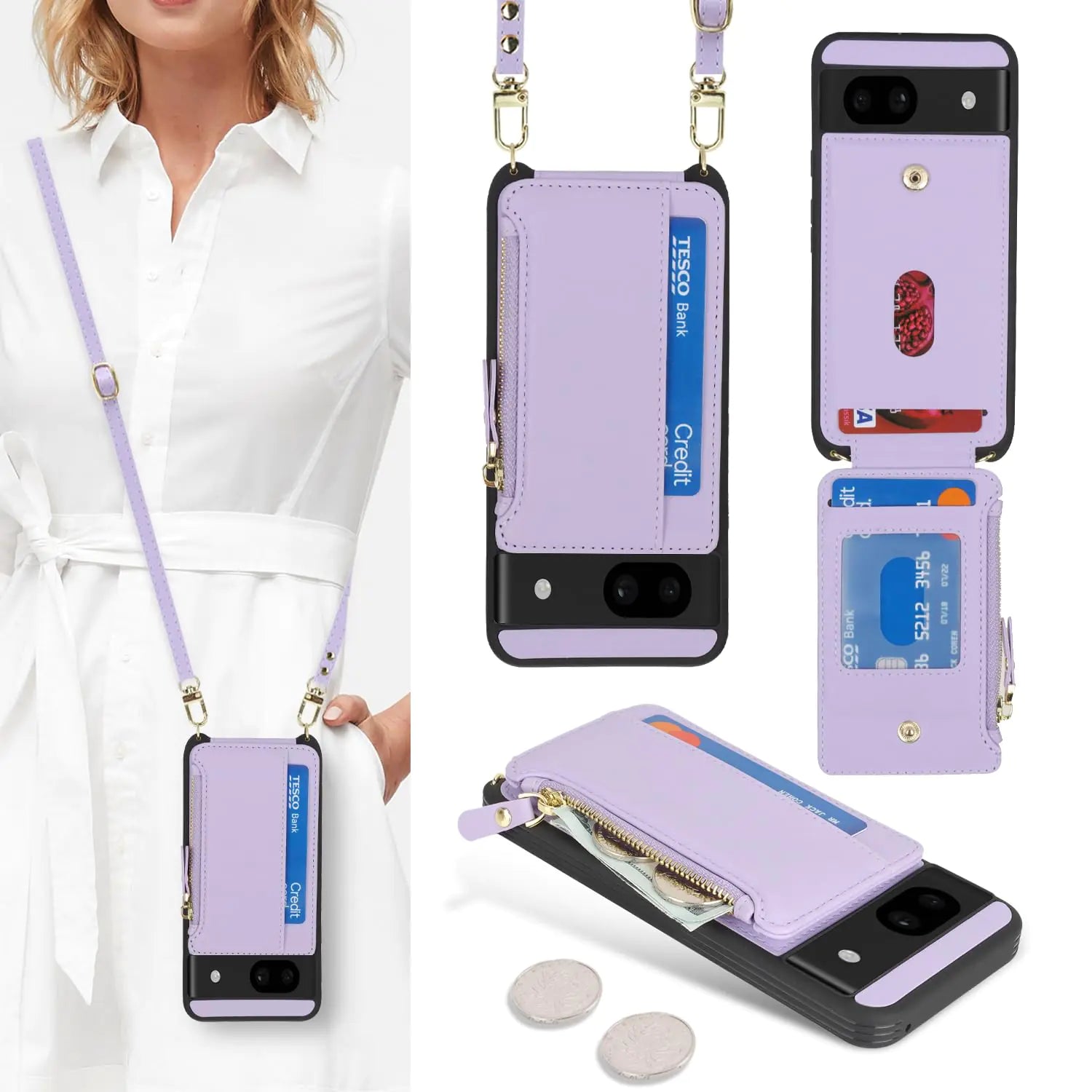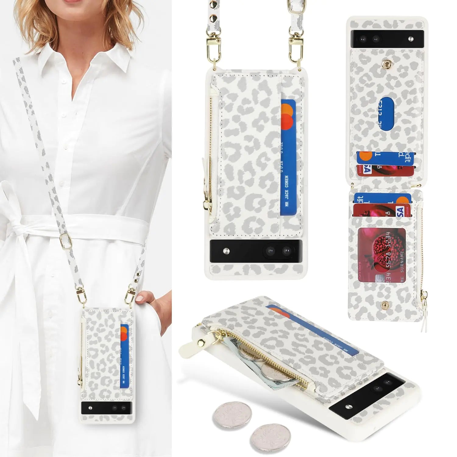 Cavor for Google Pixel 6 Case Wallet,Phone Case for Pixel 6 Crossbody Case with Strap,Pixel 6 Wallet Case for Women,Leather Zipper Pocket Card Holder Case-Leopard Black